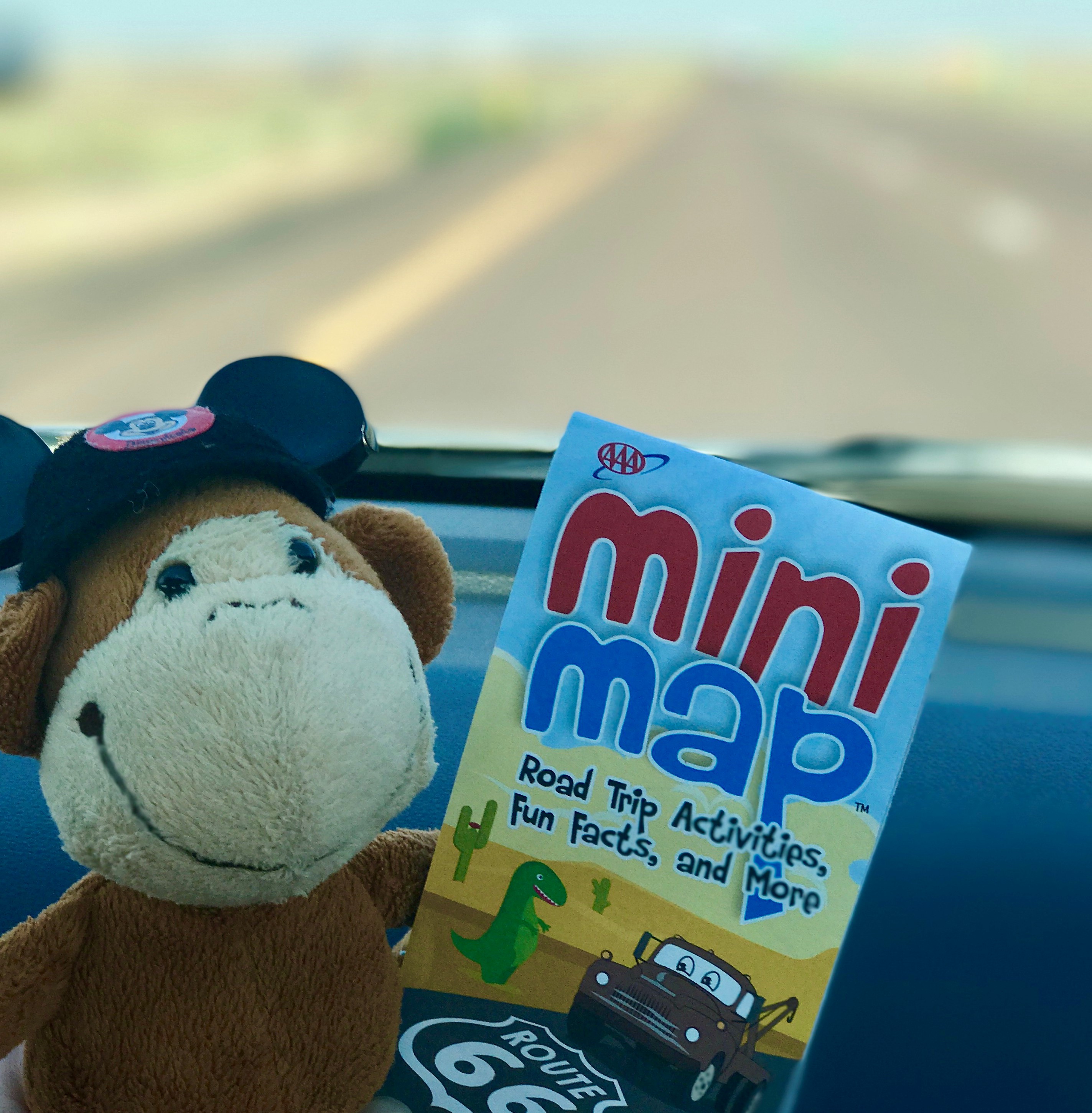 Monkey in Shamrock, Texas showing what one of the “Old Route 66” historic signs looks like. Follow these to be officially on the historic Route 66. | Photo credit: Krista