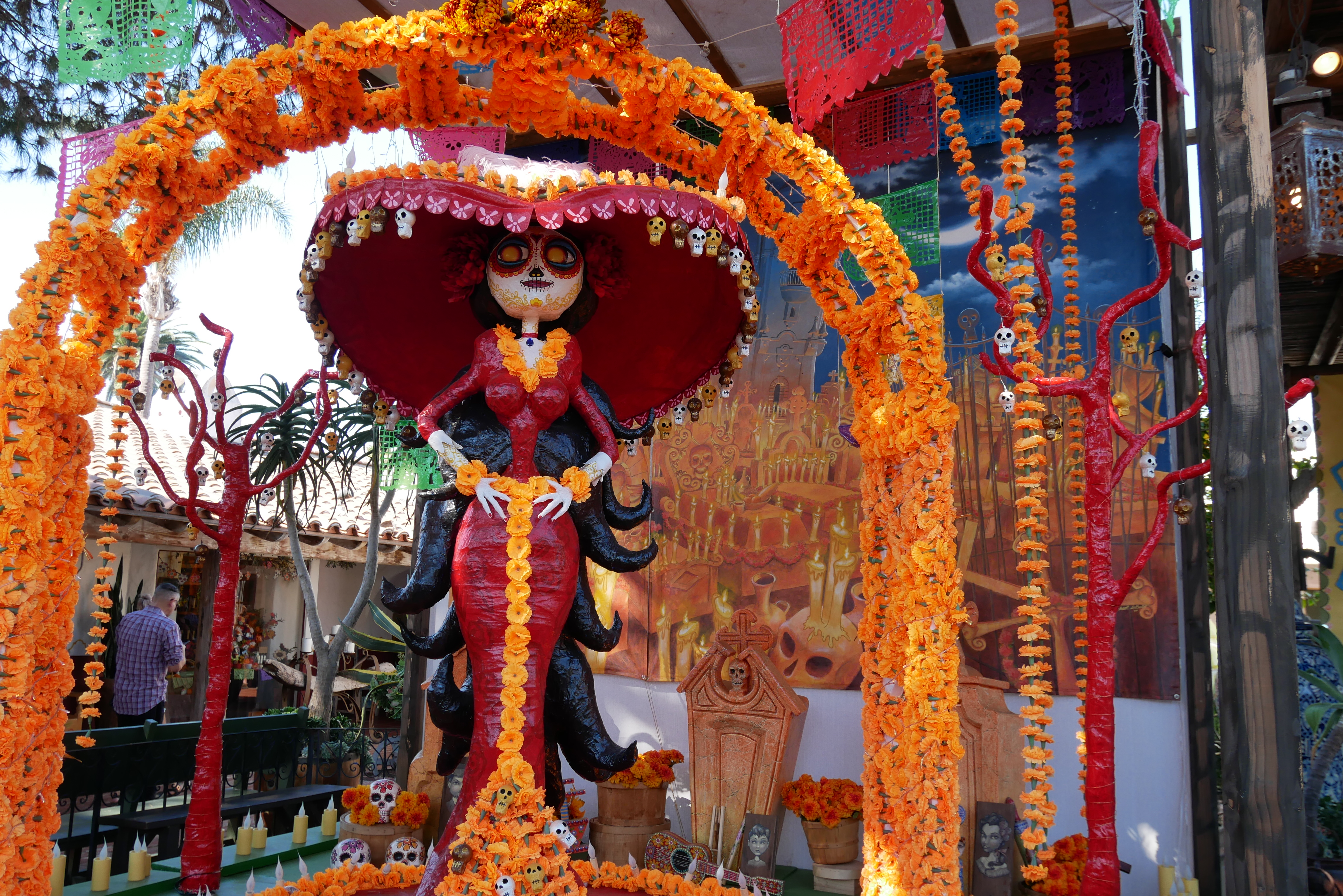 Are you familiar with Day of the Dead? Also known as Dia de los Muertos, this long-standing Mexican tradition is two-day celebration held on November 1st and 2nd each year. It is a time to remember and joyously celebrate the dearly departed in a lively, festive way. Families create special altars to honor and remember their loved ones. In addition to placing the deceased’s favorite things on the altar, items such as sugar skulls (las calaveras de azúcar), yellow marigold flowers, and candles are also displayed. If you are in San Diego, a visit to Old Town is the go-to destination for Dia de los Muertos. Let’s take a closer look at celebrating Day of the Dead in Old Town San Diego.