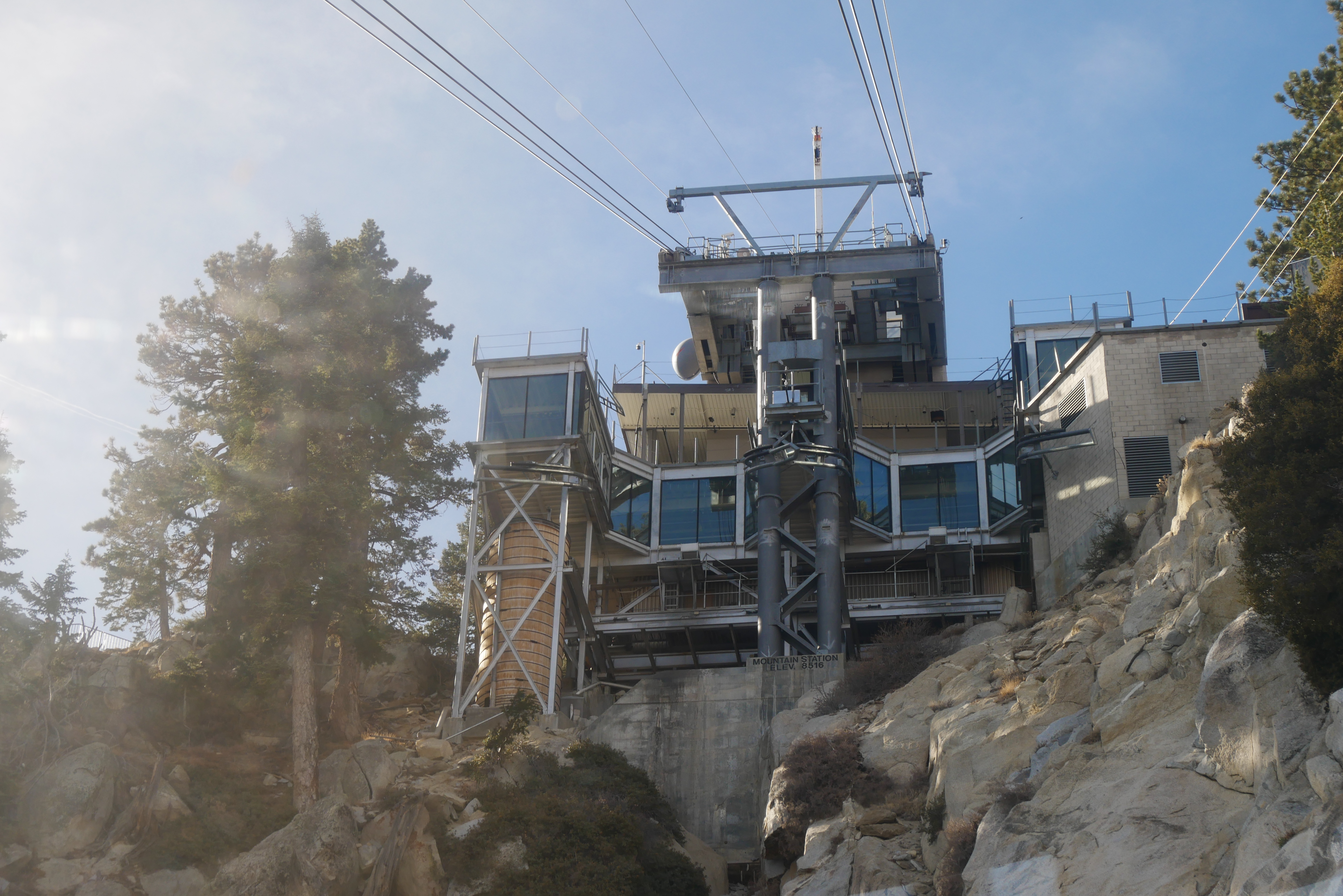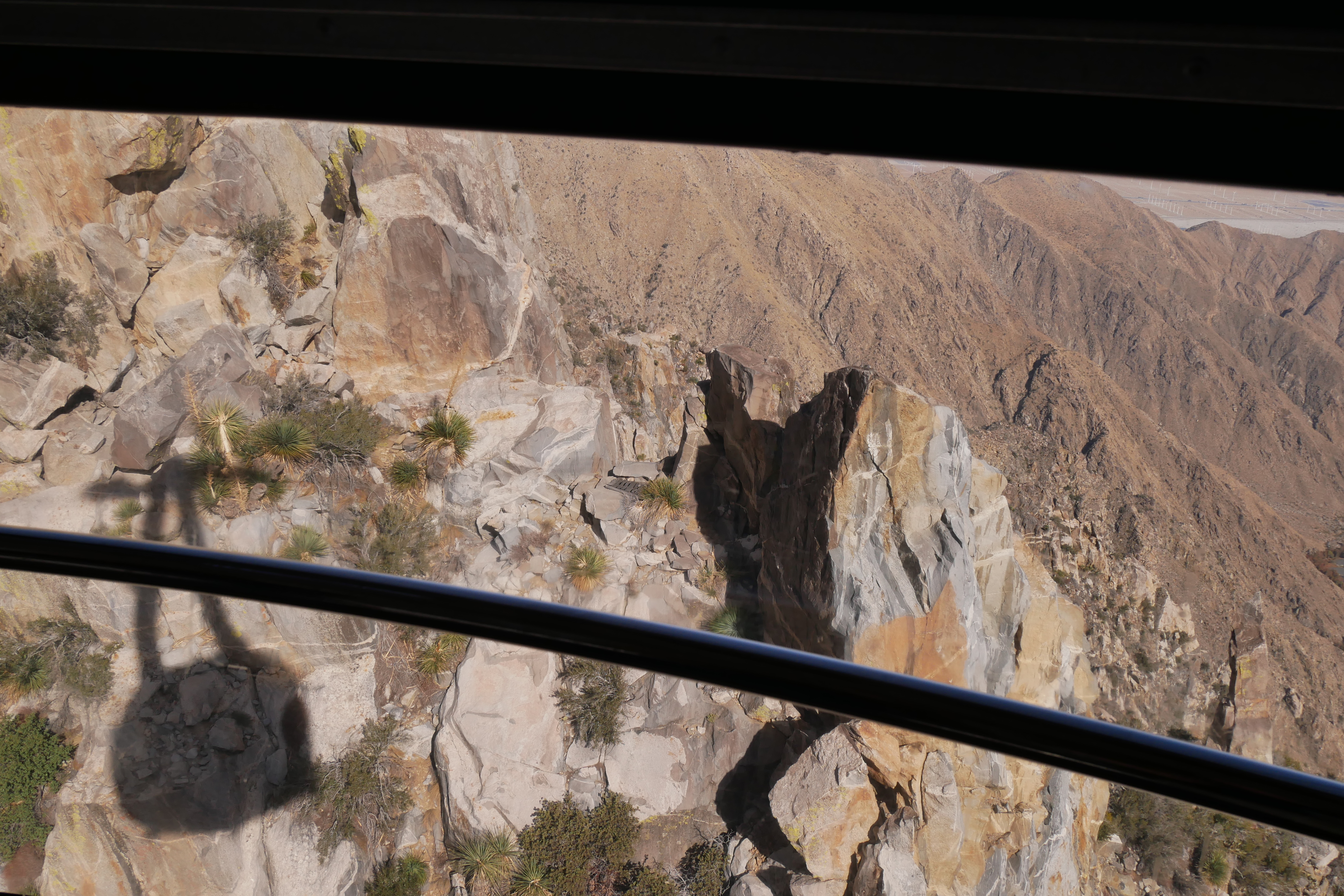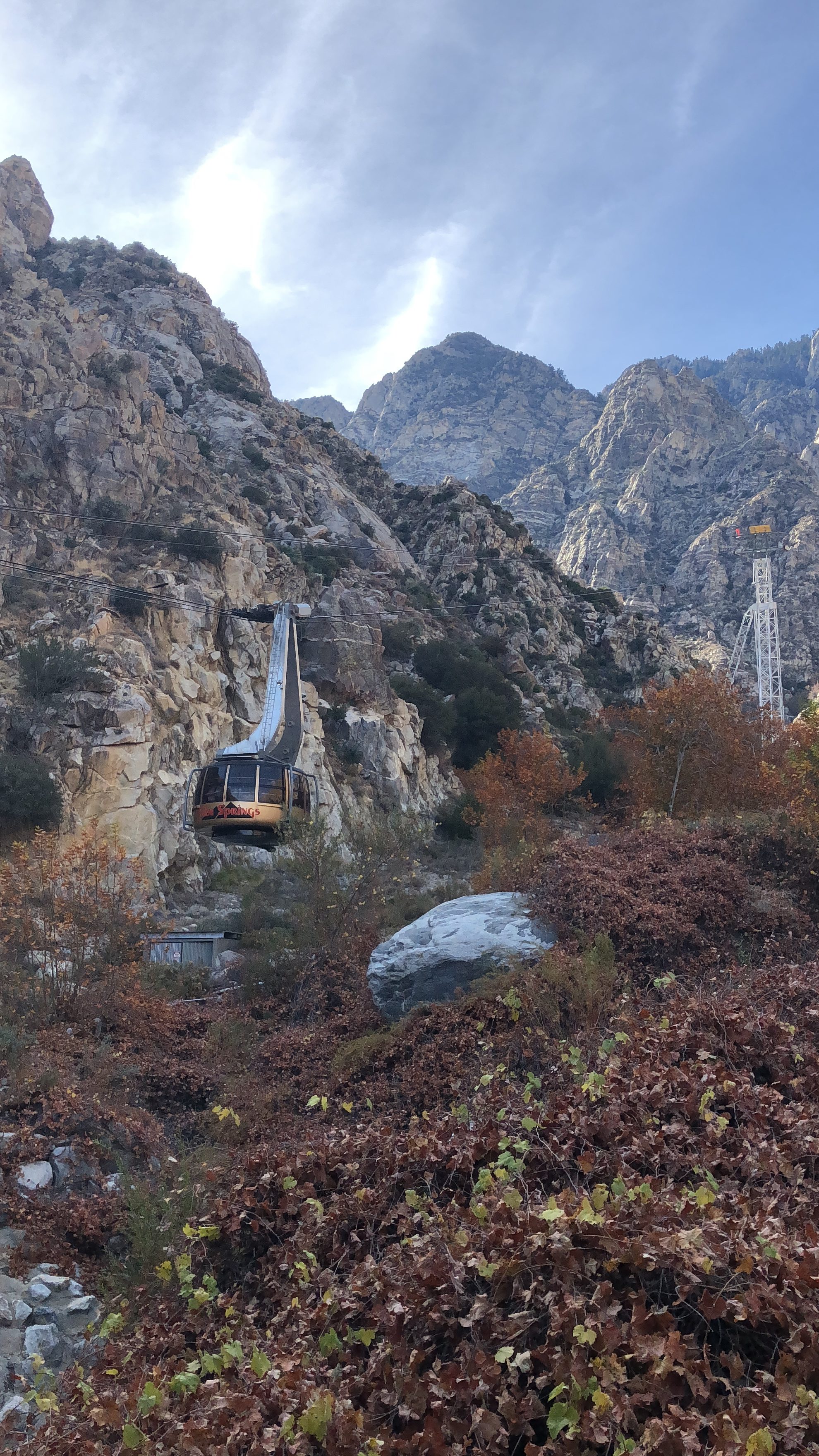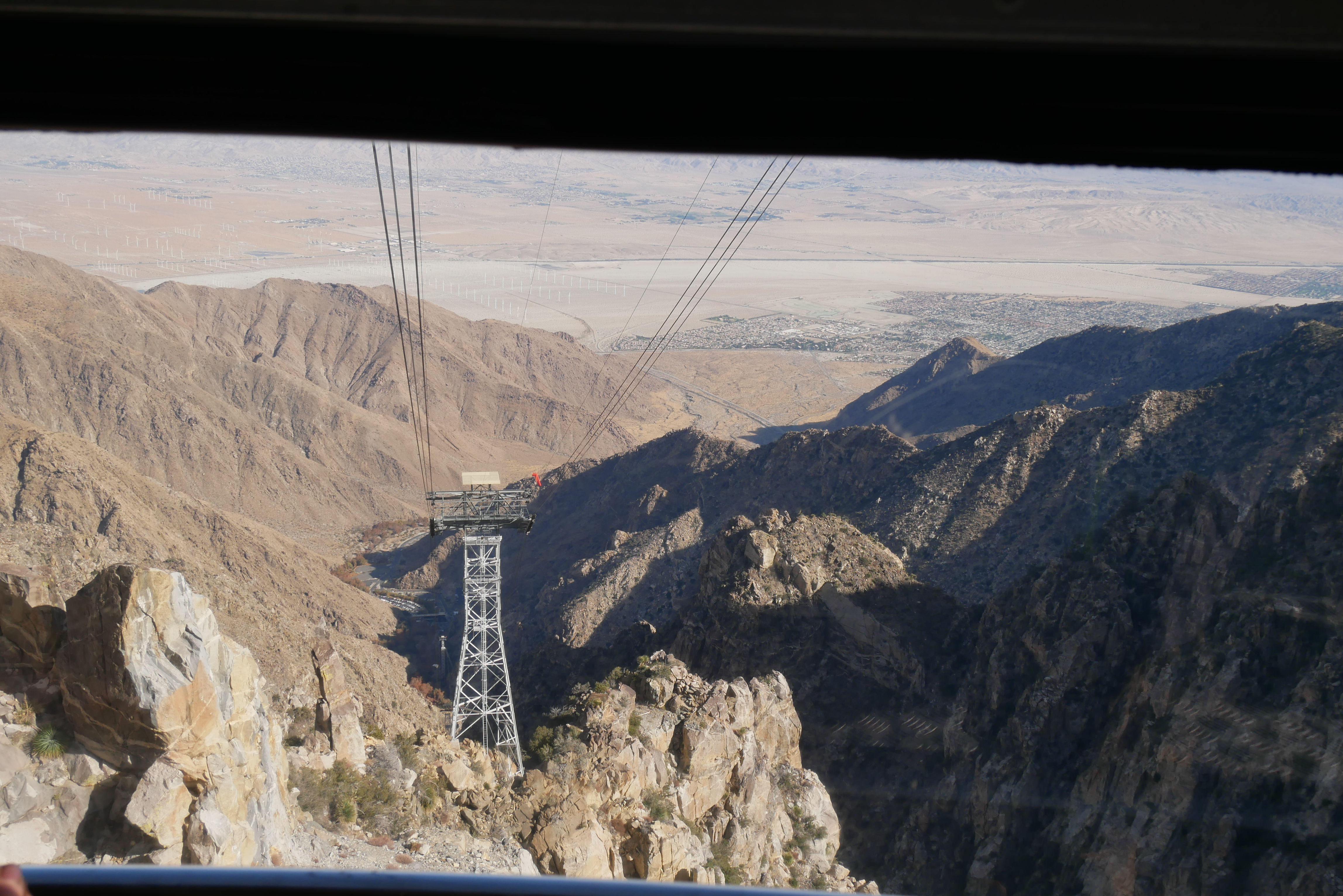 On the ride back down, we were able to get some good views of the Coachella Valley floor and the helicopter landing pads on the tramway’s upper towers. Even though we visited in late December, the San Jacinto Mountains did not have snow, yet, and we saw many trees showing fall colors around Valley Station.