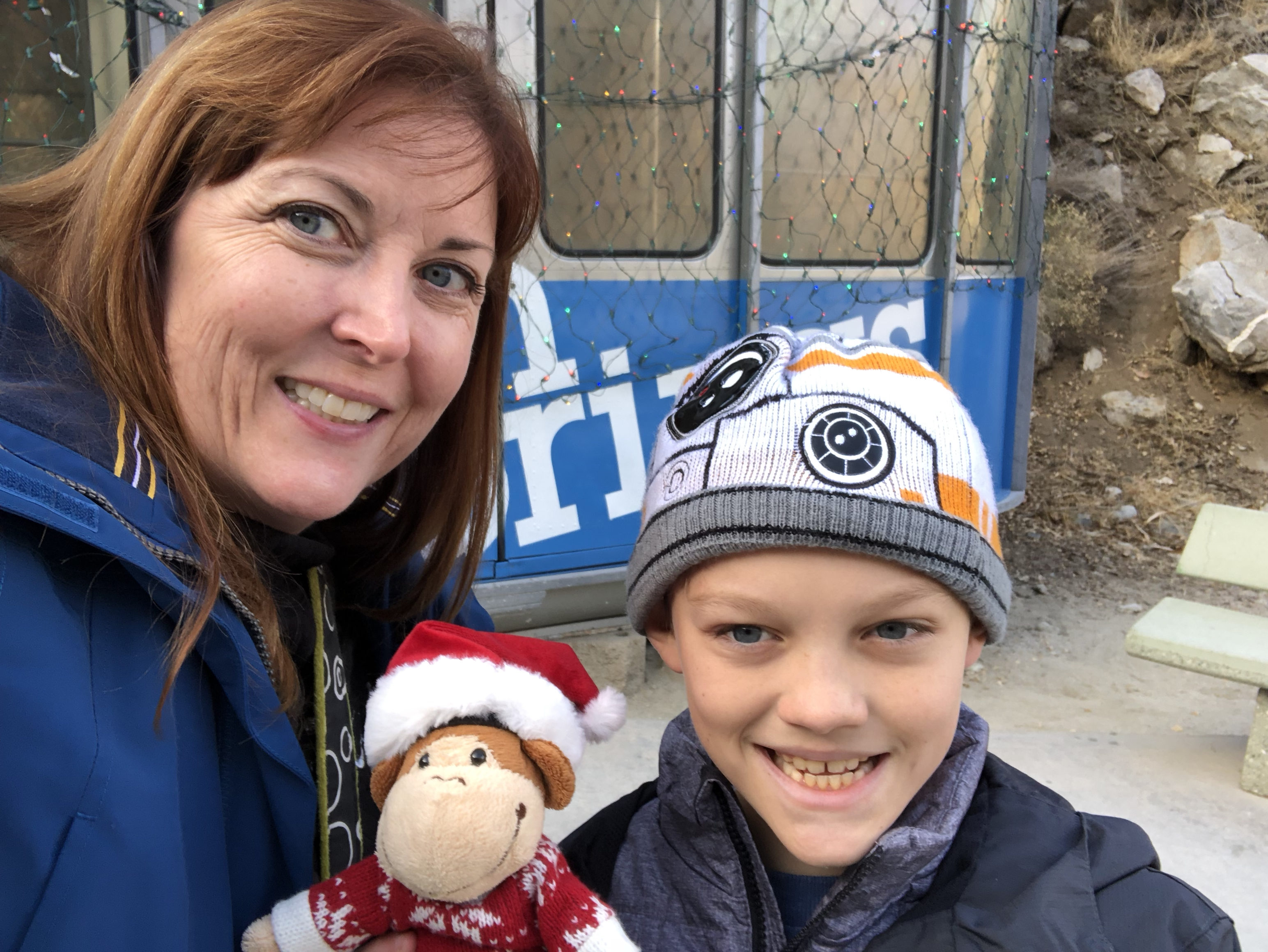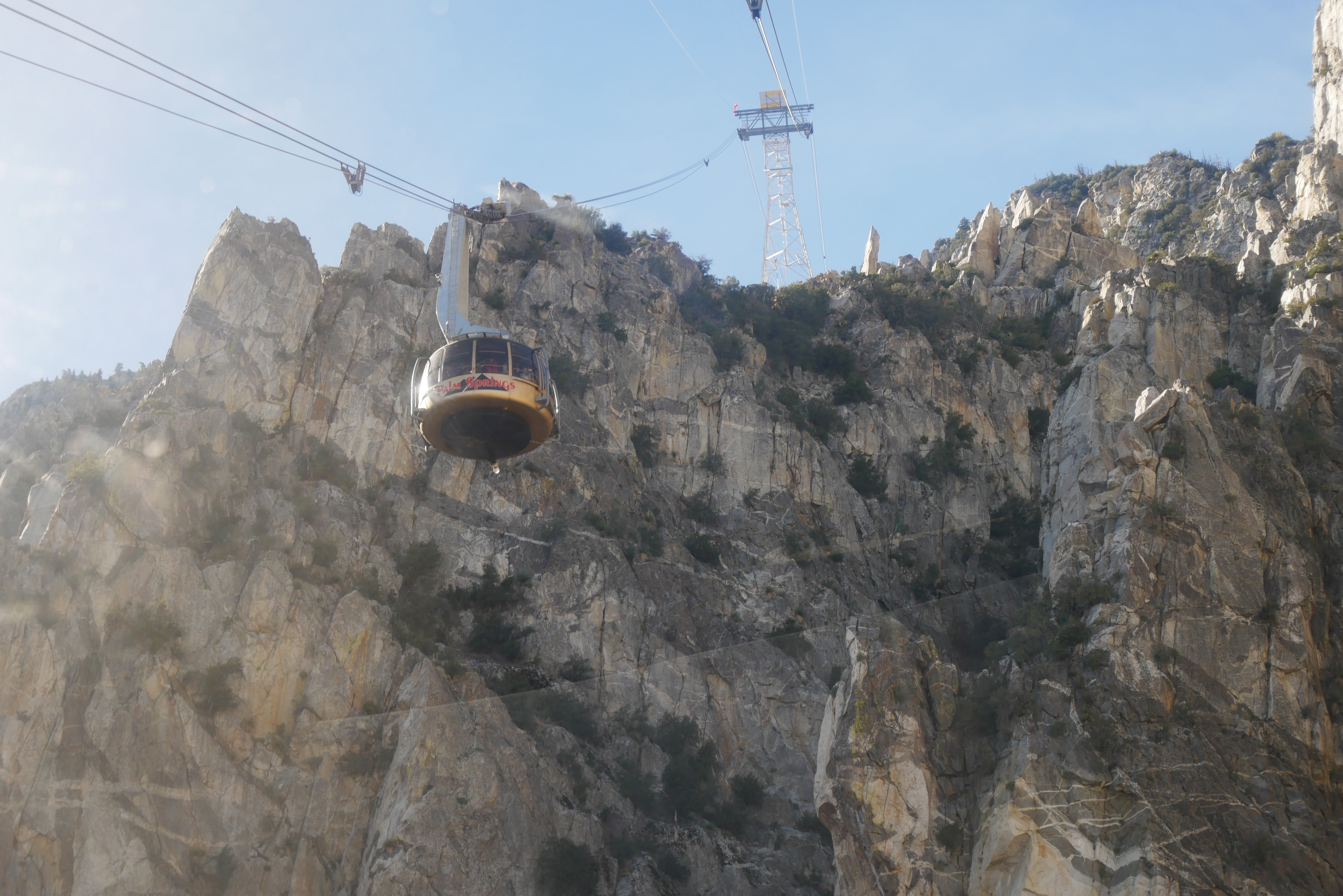 In late December, we made a day trip from San Diego to Palm Springs to check out the aerial tramway. In the mid-1990s, I took a trip on the aerial tramway, but this was my husband’s and grandson’s first visit. Since 1963, nearly 18 million people have traveled on the Palm Springs Aerial Tramway, which begins at the Valley Station (elevation 2,643 feet) and ends at the Mountain Station (elevation 8,516 feet). In 2000, a major overhaul of the tramway was completed. This ambitious modernization program resulted in the world’s largest rotating tramcars. So even though I had been on the tramway before, the rotating cars were new for all of us.