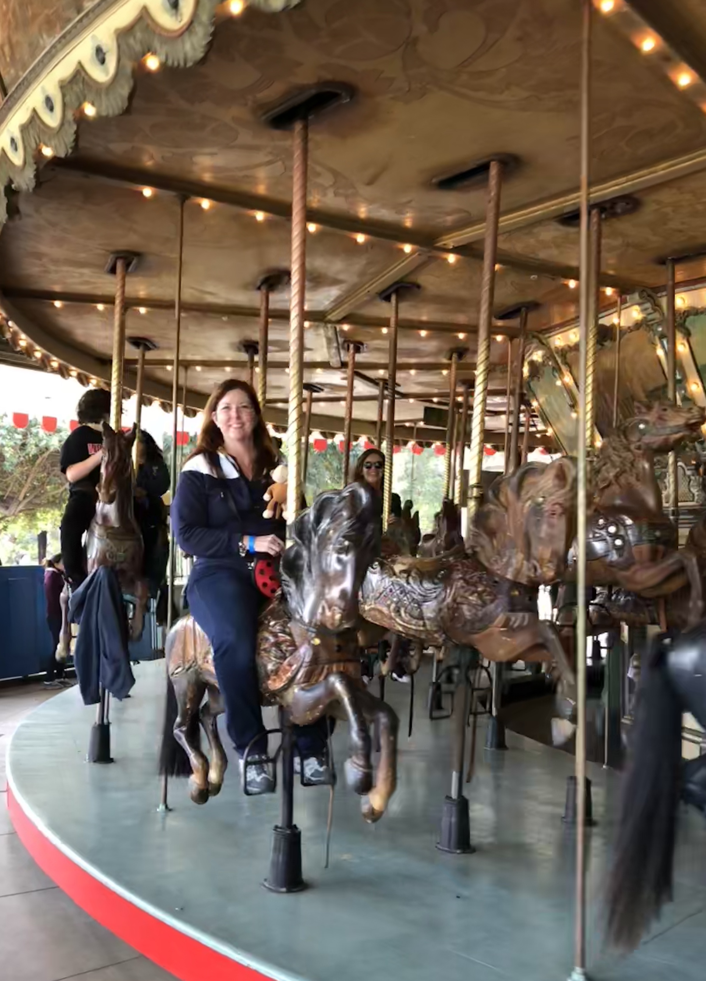 Krista & Monkey took a spin on the Merry-go-Round. | Photo credit: Lloyd