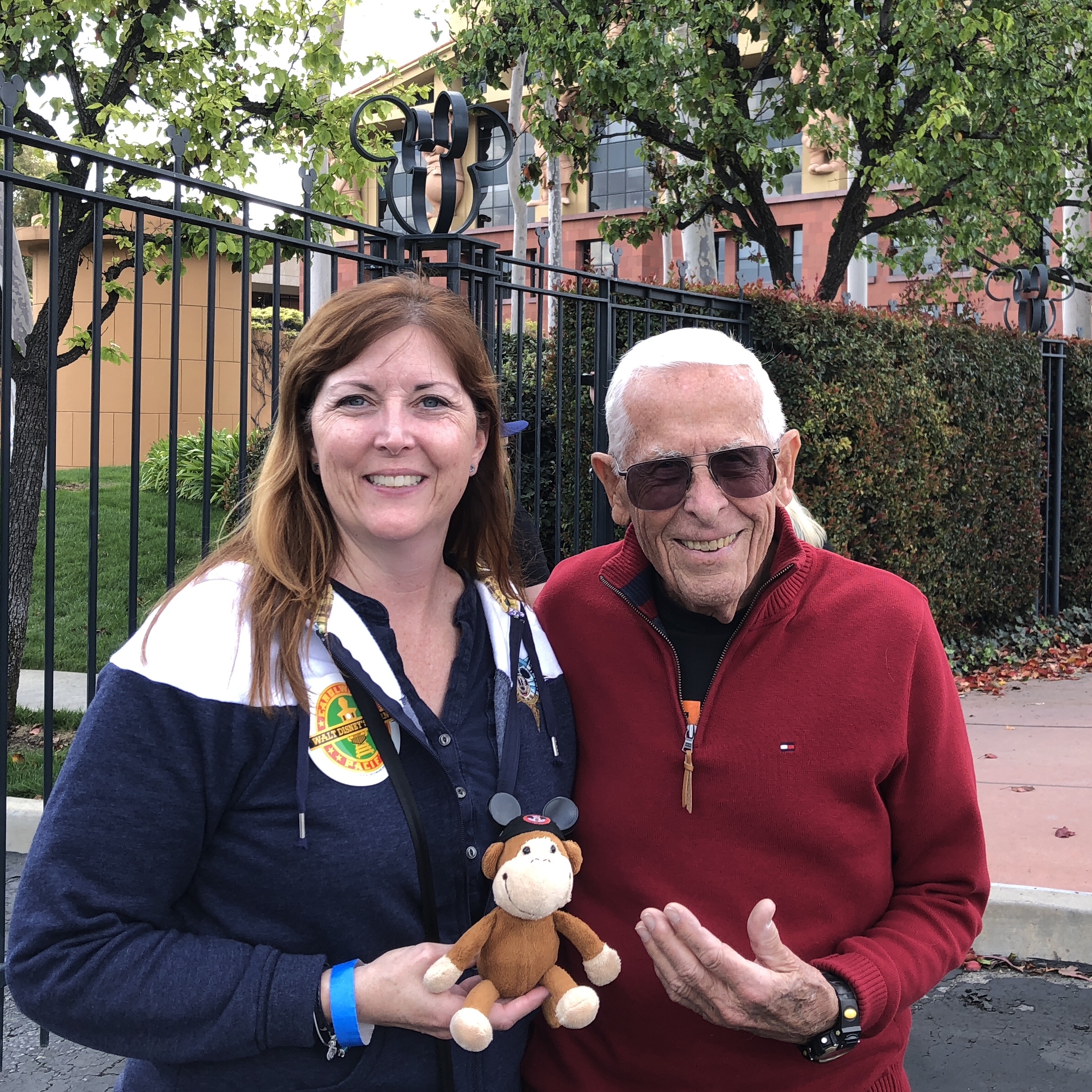 Krista and Monkey with Bob Gurr, Disney Legend and Imagineer. | Photo credit: Lloyd